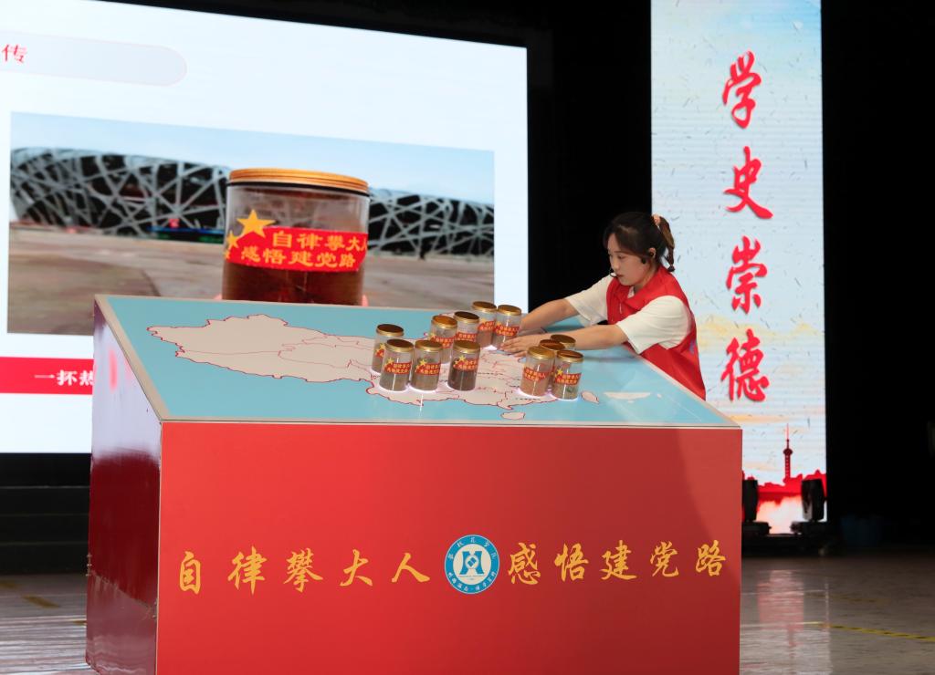 实践学生分享结束后,现场展示的中国地图上15个地点被点亮,放置的15抔热土,将中国共产党人矢志践行初心使命、筚路蓝缕奠基立业、创造辉煌开辟未来百年历程中的重要历史时刻,深深地铭刻进了师生的心中。