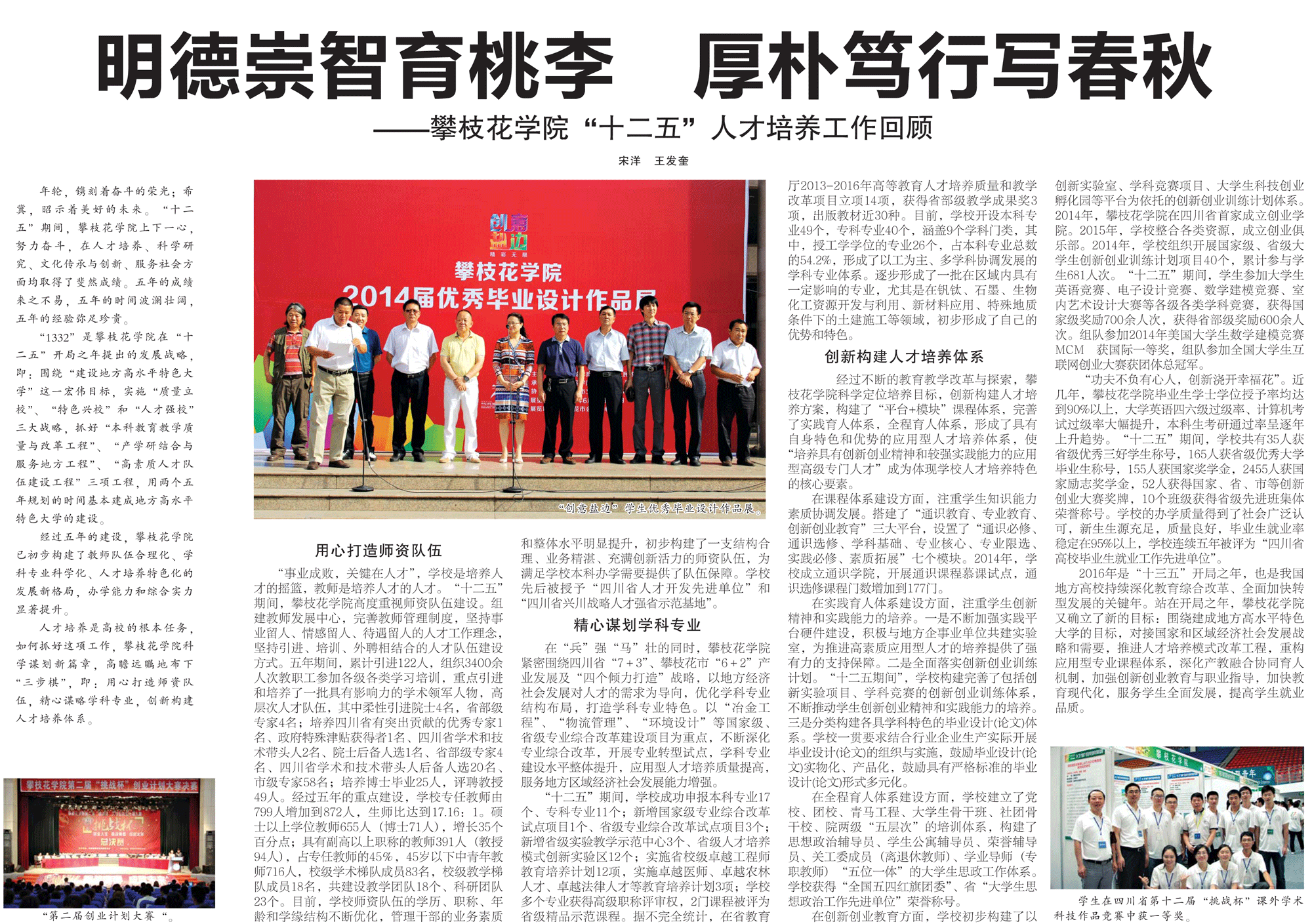 5月5日《攀枝花日报》报道了beat365“十二五”期间人才培养工作成果,现将《攀枝花日报》报道内容全文转载如下。