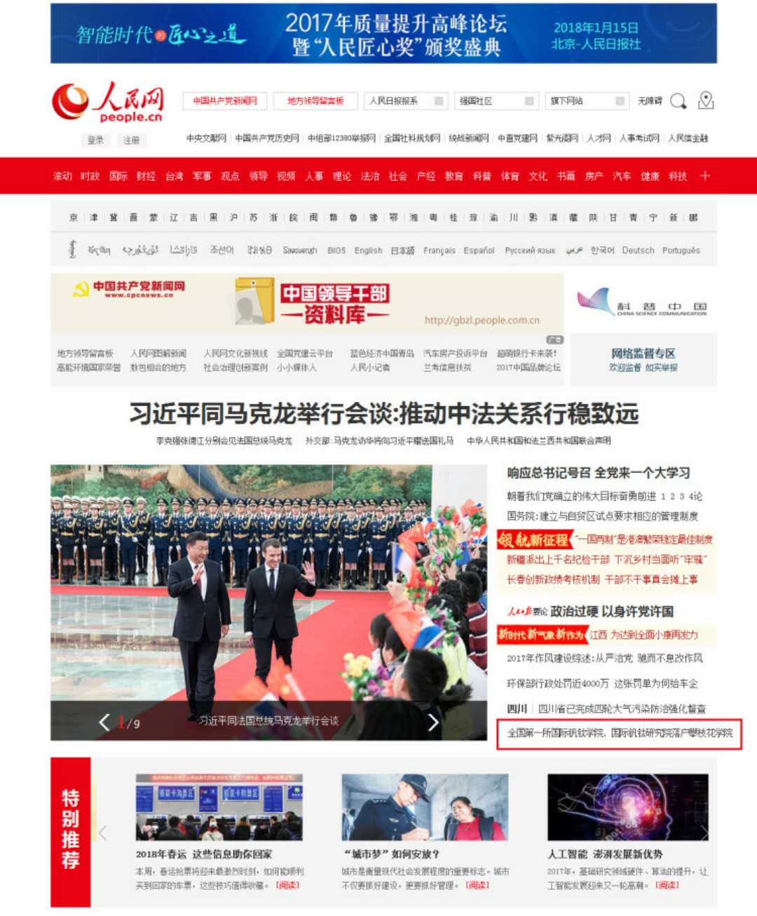 人民网首页报道: