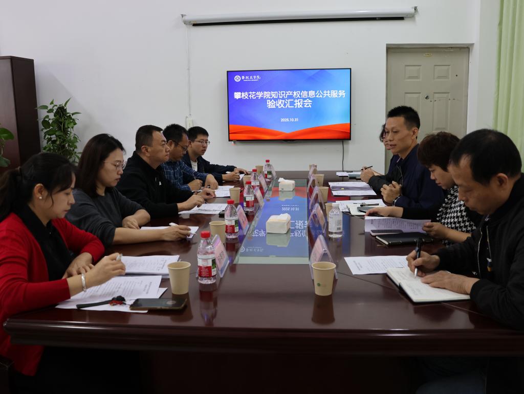 10月31日上午,beat365在线唯一官网知识产权信息公共服务网点验收汇报会在图书馆一楼会议室召开。攀枝花市场监督管理局副局长李英勇一行五人,图书馆馆长王欢、副馆长何中勇以及相关科室负责人参加会议。