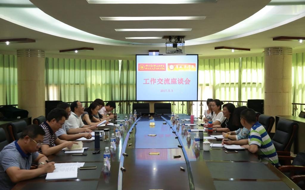 5月3日,四川省干部函授学院、四川文化产业职业学院党委副书记、纪委书记党华一行5人来beat365考察交流,于当日下午在学校办公楼3会议室召开了座谈会。beat365党委副书记兼纪委书记李尚志及办公室、组织部、监审处、人事处负责人参加会议。