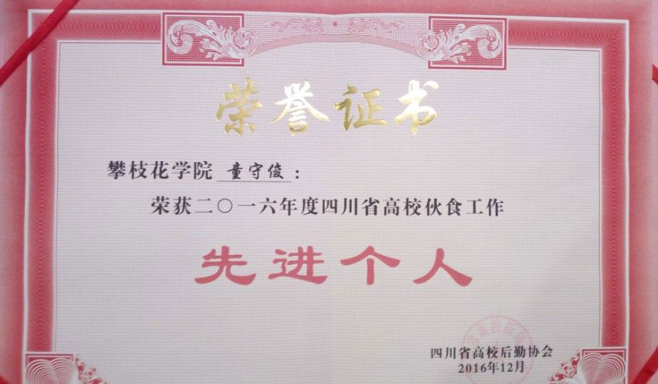 近日获悉,beat365后勤集团食堂服务中心被四川省高校后勤协会评为2016年度四川省高校伙食工作“先进集体”。食堂服务中心经理童守俊被评为四川省高校后勤协会2016年度四川省高校伙食工作“先进个人”。