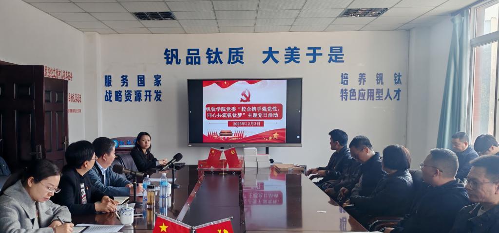 为推动校企党建共建走深走实,12月3日下午,钒钛学院在砺志楼303会议室举行“校企携手强党性,同心共筑钒钛梦”主题党日活动。学院全体师生党员与攀钢钛金属公司企业专家党员共同参加,活动由学院党委副书记马兰主持。