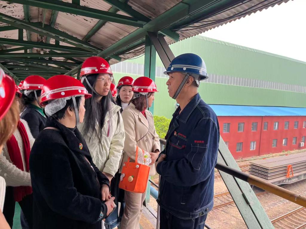 活动首站走进攀钢轨梁场。在攀钢专业讲解员的带领下,与会人员深入钢轨生产车间,聆听了生产线的发展历程与技术创新,实地观摩了现代化钢轨制造流程,亲身感受到钢铁工业的智能制造实力与精益管理水平。