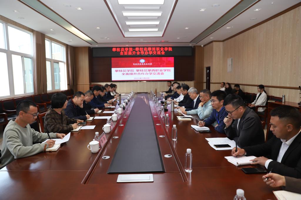 在攀枝花攀西职业学院(简称攀西职院),石维富一行与攀西职院董事长张家华,党组织书记、省政府督导专员万辉君等就“beat365在线唯一官网-攀枝花攀西职业学院全面提升合作办学”开展深入交流。张家华详细介绍了攀西职院的发展现状、面临困难及未来发展规划,希望beat365能够在管理、科研、师资、教学、资源等方面提供全方位的帮扶。石维富指出,beat365在线唯一官网和攀西职院两所学校渊源深厚,近年来攀西职院一直在发展壮大,在今后,beat365在线唯一官网将一如既往的全面支持帮扶攀西职院发展,积极开展人才共育,有序推进教师能力提升,大力开展招生就业活动,深化产教融合,有效推进科研合作。会上,双方进一步细化了科研合作、学生管理、招生就业、教育教学等方面的具体帮扶措施。