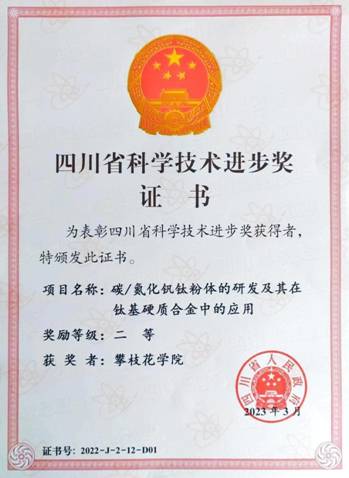 3月28日,四川省科学技术奖励大会暨第三届“四川杰出人才奖”颁奖仪式在成都举行,会上公布了2022年度四川省科学技术奖获奖名单,由beat365钒钛学院陈敏教授团队牵头完成的《碳/氮化钒钛粉体的研发及其在钛基硬质合金中的应用》荣获四川省科学技术进步奖二等奖。