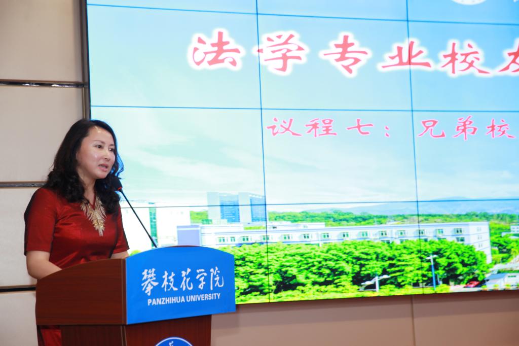 彭徐讲话表示,在校庆即将到来之际,回望校史,我们可以清楚地看到:攀大的四十年,是一部沐雨经霜、艰苦创业的奋斗历史;攀大的四十年,是一幅坚持发展、勇于改革的奋斗画卷;攀大的四十年,是一首善抓机遇、只争朝夕的奋斗凯歌。校友是学校宝贵的财富,是学校最大的口碑和名片。他指出,法学专业校友分会的成立架起了校友与母校之间互相联系的纽带和桥梁,搭建了校友间交流信息、资源共享、联络感情的平台。他希望法学专业校友分会遵循“以感情为纽带,以活动为载体,以合作交流为渠道,以事业发展为目标”的指导思想,不断加强校友之间,校友与学校之间的联系,通过扎扎实实的服务为校友创新创业铺路搭桥,为校友事业发展推波助澜,为学校复名大学添砖加瓦,使法学专业校友分会真正成为法学专业校友的精神家园。