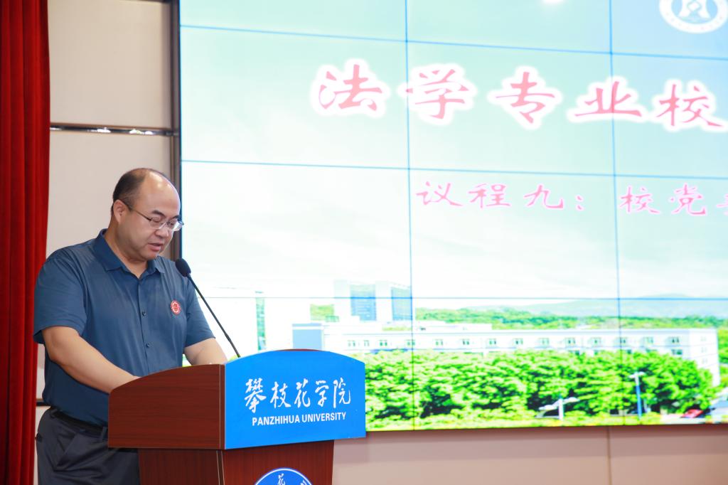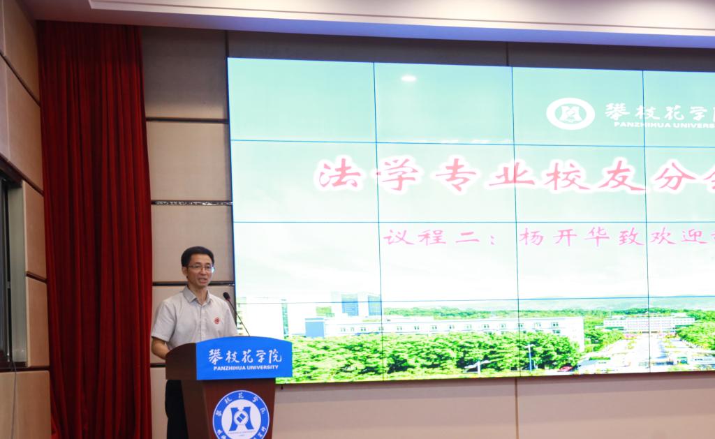 法学院副院长(主持工作)杨开华致欢迎辞。他介绍了法学专业28年来弦歌不辍、砥砺前行的发展历程,对参加大会的校友们表示热烈欢迎,对广大校友对学院建设发展的关心和支持表示衷心感谢。