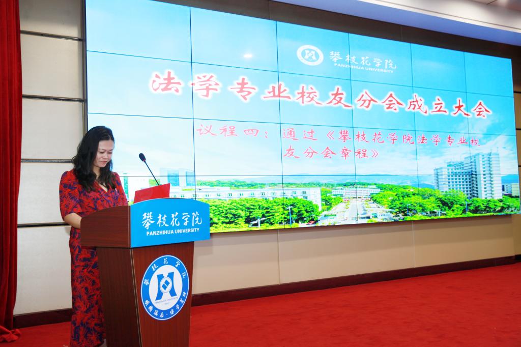 法学专业校友分会执行会长王芬现场宣读并表决通过了《beat365在线唯一官网法学专业校友分会章程》。