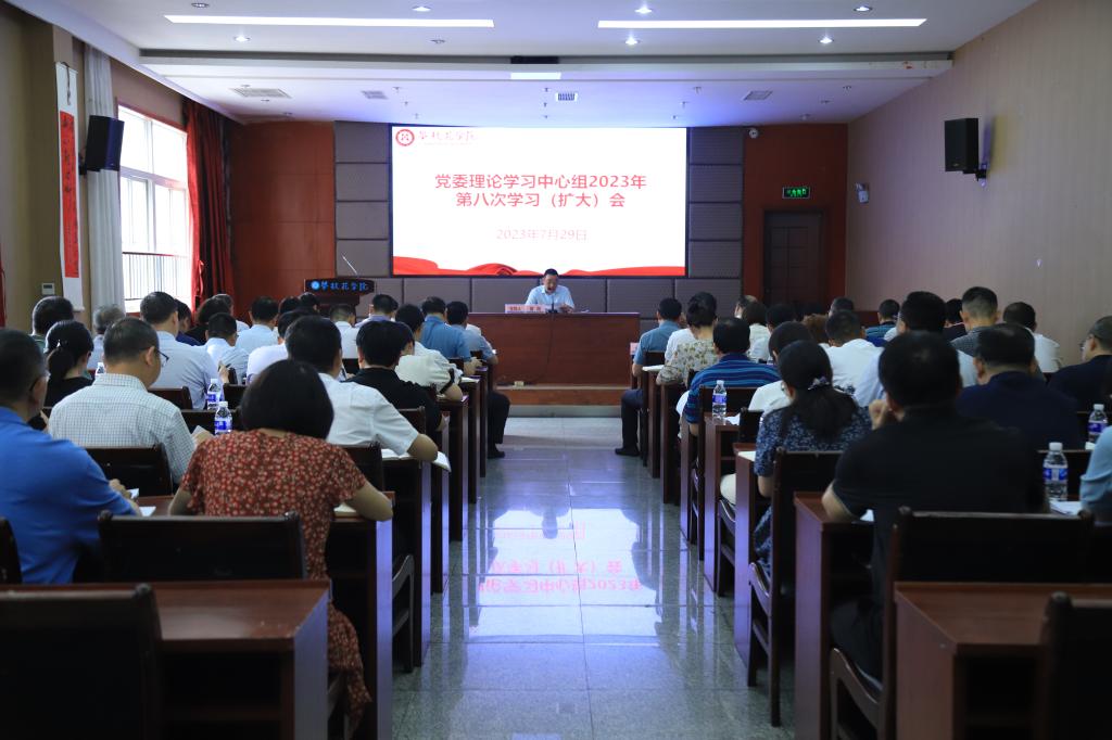 为深入学习贯彻习近平新时代中国特色社会主义思想,专题学习领悟习近平总书记关于党的建设的重要思想,及时跟进学习习近平总书记最新讲话精神和重要指示批示,坚持不懈用党的创新理论统一思想意志行动,鼓足干事创业的精气神,奋力开创应用型一流大学建设新局面,7月30日上午,beat365在416室召开党委理论学习中心组2023年第八次学习(扩大)会,全体校领导、两委委员、直属党组织书记、机关教辅单位负责人、二级学院党政负责人参会,党委书记胥刚主持会议并讲话。