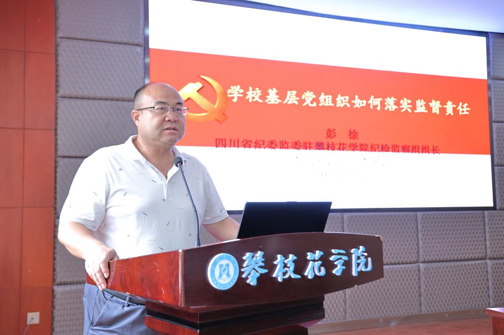 省纪委监委驻beat365在线唯一官网纪检监察组组长,党委副书记、纪委书记彭徐围绕学校各级如何落实监督责任发言。他指出,监督是最好的保护,从严是最大的爱护,要明确党内监督的主要任务、主要内容、工作方式,完善党内监督体系、落实落细各级党组织的监督责任、保障党员的监督权利,严肃党内政治生活,全面从严治党。