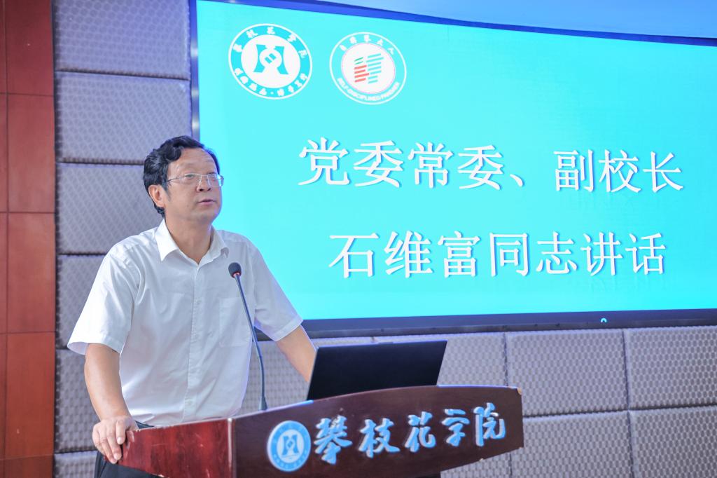 副校长石维富围绕学科建设和科研工作进行了安排部署,重点围绕首届硕士研究生培养管理工作、新增硕士学位点申报、有组织科研和实验室建设等进行了具体安排。