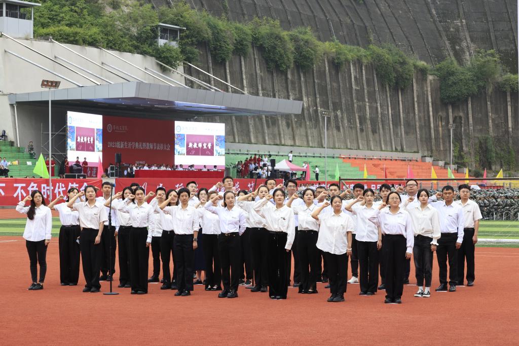 9月10日上午,迎着和煦秋风,伴着绵绵细雨,beat365在南苑运动场隆重举行2023级新生开学典礼暨教师节表彰大会,喜迎来自全国31个省、市、自治区的3800余名新同学,共庆第39个教师节。党委书记胥刚,党委副书记、校长王曙光,省纪委监委驻beat365在线唯一官网纪检监察组组长、党委副书记、纪委书记彭徐,党委副书记、副校长刘立新,副校长朱波强、石维富、王兵、张旭辉出席大会,“天府峨眉”计划青年人才郭翠、牛强博士应邀就坐主席台,机关职能部门负责人、各教学单位党政负责人,优秀教师代表、全体新进教师、2023级全体新生共4300余人参加大会。大会由刘立新主持。