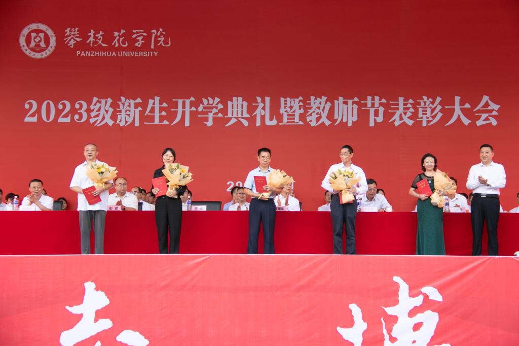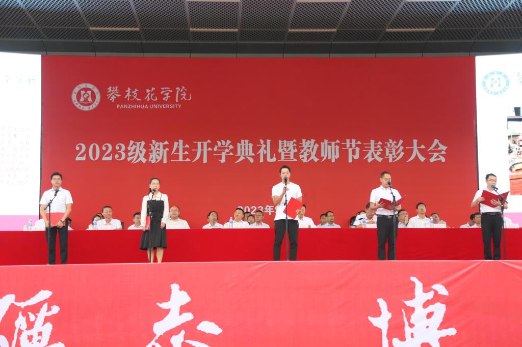 典礼上,马克思主义学院教师罗春秋、钒钛学院教师蒋志强、体育部教师普国飚、艺术学院教师王莉琴、生物与化学工程学院教师唐伟伟分别从“德、智、体、美、劳”五个方面寄语新生要立大志、明大德,懂智、增智、守智,强身健体、促进身心健康发展,发现美、追求美、提升审美能力,崇尚劳动、热爱劳动、弘扬劳动精神,坚持自律、自觉、自强,争做有理想、敢担当、能吃苦、肯奋斗的大学生,共同谱写阳光、健康、美丽新篇章!