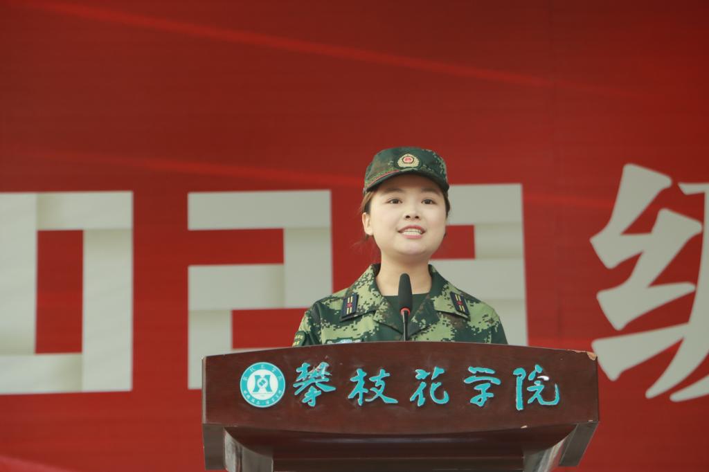 来自钒钛学院2023级的优秀学员方昕雨汇报了自己的军训感受和收获。他表示,在军训中不仅锻炼了体魄、磨练了意志,还收获了友谊,未来会以更加饱满的状态投入到学习和生活中,争做阳光健康美丽攀大人。