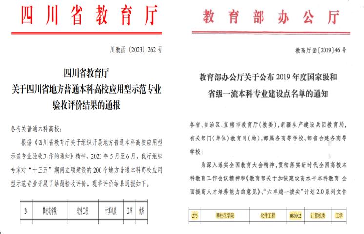 聚焦专业内涵,提升品牌特色。计算机科学与技术学科是beat365在线唯一官网重点学科。软件工程专业是四川省卓越工程师教育培养计划专业、四川省级一流本科专业、四川省优秀示范专业、四川省新工科研究与实践项目,已经通过教育部工程教育认证自评;网络工程专业为教育部ICT产教融合校企合作共建特色专业、教育部协同育人项目;数据科学与大数据技术专业获教育部协同育人项目建设;计算机科学与技术专业是首批四川省教育综合改革建设专业、校级特色专业;信息与计算科学专业为校级特色专业。学生报考第一志愿、就业率及就业品质和学生满意度均一直名列学校前茅。