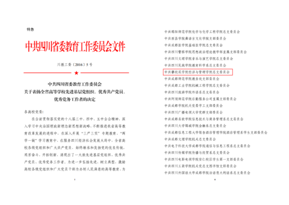 | 2016年获评四川省高等学校先进基层党组织 |