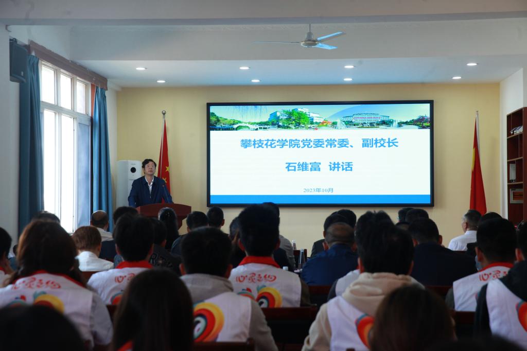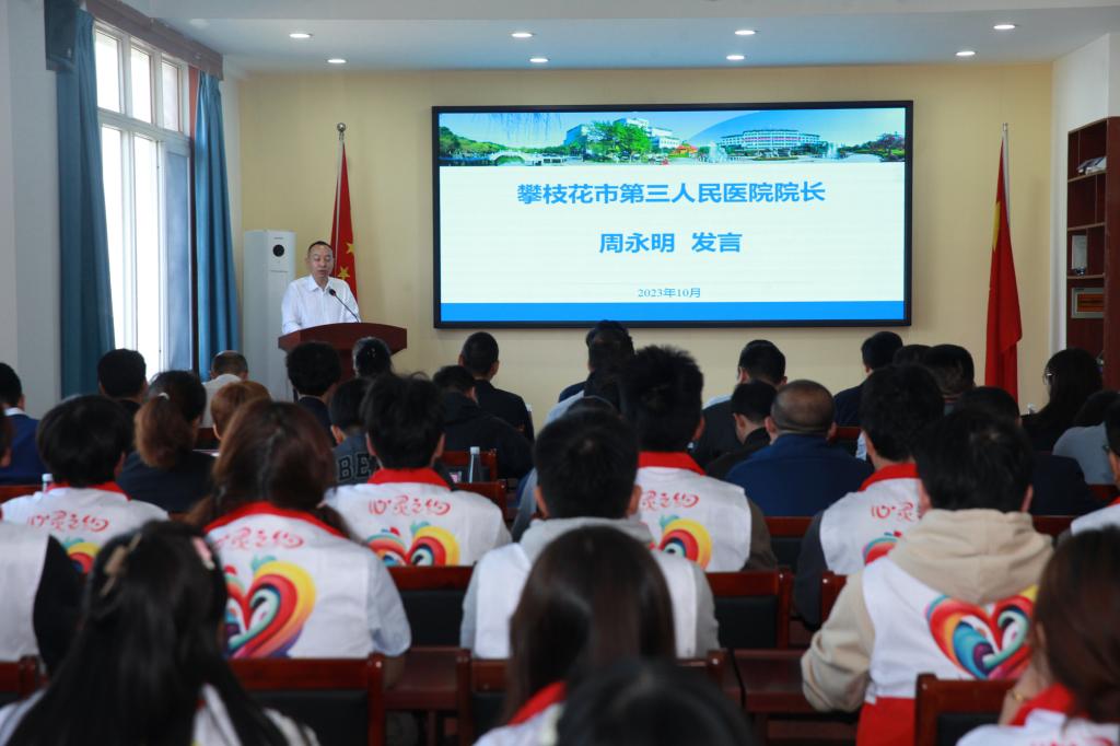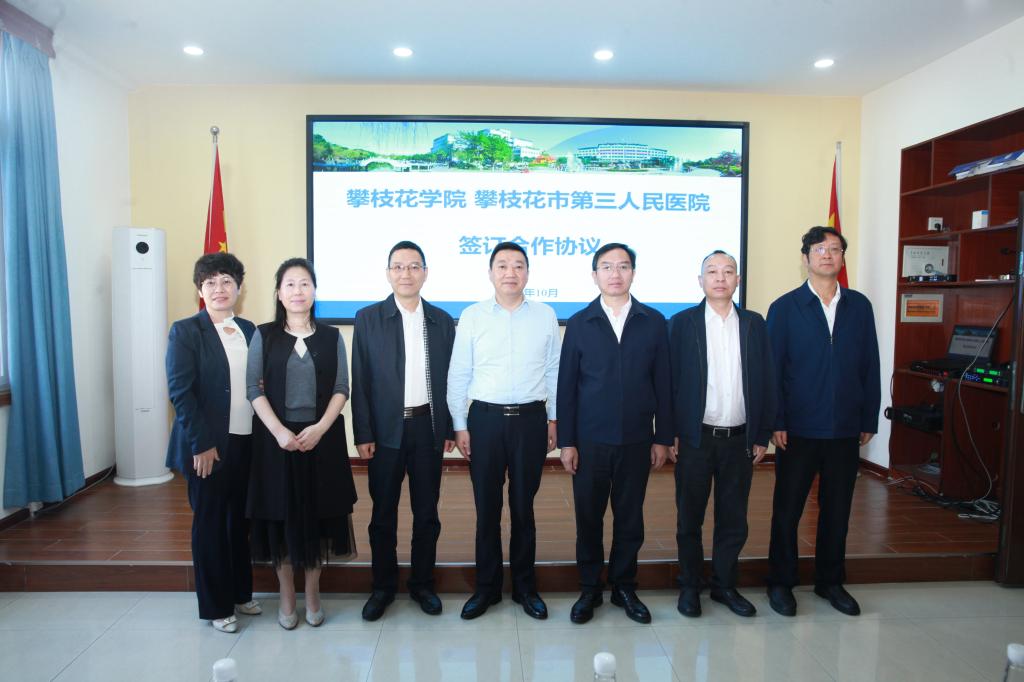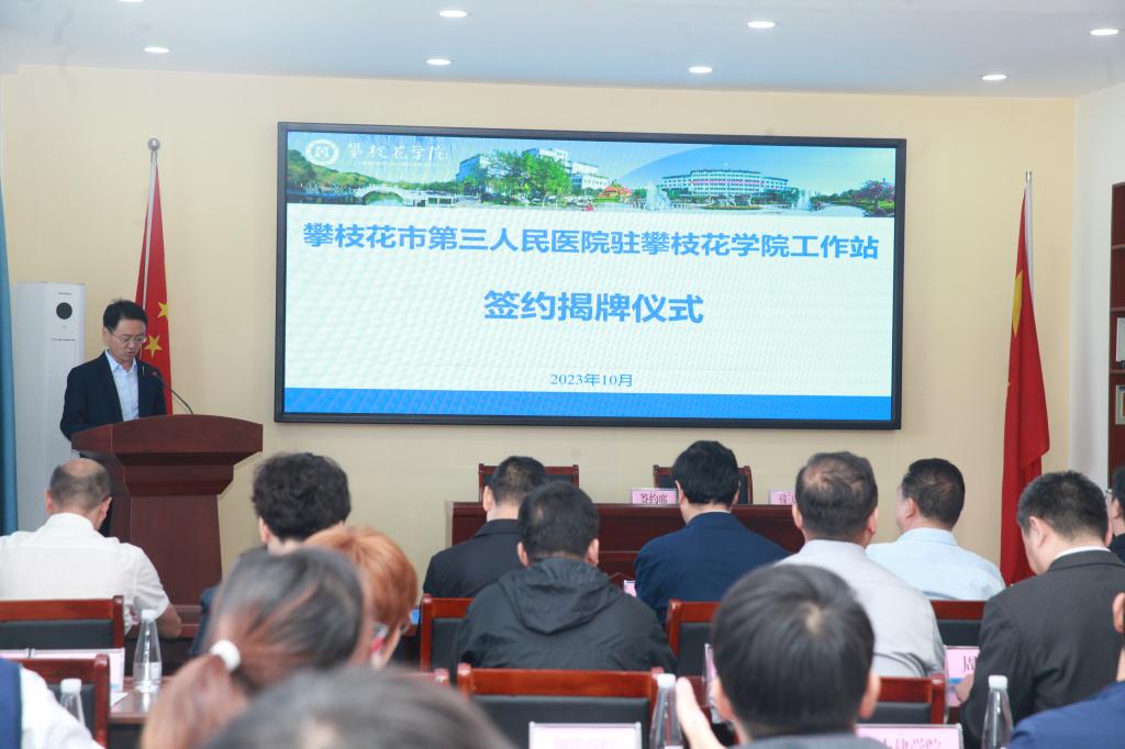 为进一步关心关爱师生心理健康,助力文明城市、健康攀枝花和全国文明校园建设。10月31日上午,在学校励志楼201会议室举行攀枝花市第三人民医院驻校工作站签约揭牌仪式。党委书记胥刚,党委常委、副校长石维富,攀枝花市卫健委主任张福鑫,攀枝花市第三人民医院党委书记贺云明、院长周永明,beat365在线唯一官网附属医院副院长卿丽华,市卫健委、市第三人民医院、附属医院相关科室负责人,学校相关职能部门负责人、各学院分管学生工作领导、学生心理委员代表共70余人参加仪式。