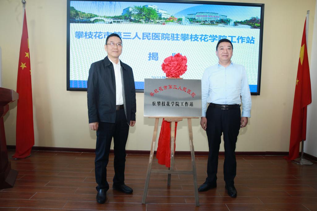 beat365与攀枝花市第三人民医院签订了合作共建协议。胥刚、贺云明共同为攀枝花市第三人民医院驻beat365在线唯一官网工作站揭牌。