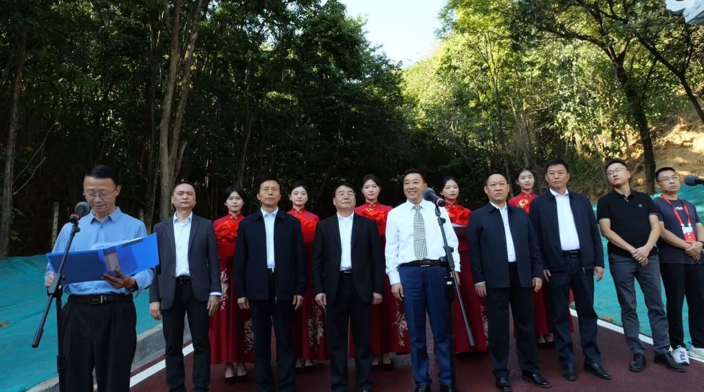 胥刚、王曙光、张国锷、嘉宾、校友、施工单位代表共同为“汉阙”落成揭幕暨学校公园观光车道互通(A线)工程竣工剪彩。