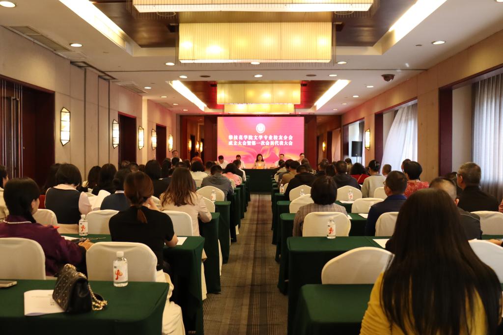 文学院党总支副书记(主持工作)汪大喹为文学专业校友分会授牌,第一届理事会会长张旭斌和秘书长蔡华接牌。