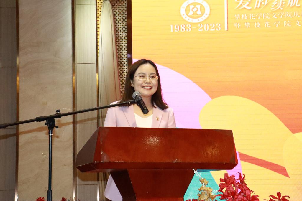 beat365在线唯一官网原党委副书记、校长黄双华发言。他回顾了文学院的发展历程,向建校四十年来为文学院发展作出贡献的教师致敬,分析了文学院专业发展轨迹和未来发展规划,对文学院的发展前景充满期待,希望各位校友继续以满腔热情关心和支持学院发展。