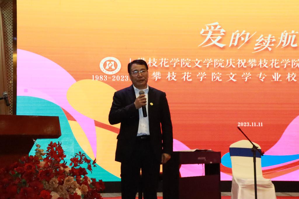 攀枝花市委常委、统战部部长、文学院1987届校友马晓凤发表感言。她强调,母校是一生中永远割舍不断的一段情缘和基因,在文学专业校友分会成立这个值得纪念的日子,校友们既要共襄盛举,畅叙友谊,也要正本清源,赓续未来,重塑文学的神圣信念,一个缺失文学的民族,难以成为强大的民族;一个文学修养不足的人,也难以具备完美的人格;认为攀大有“敢为人先”“勇于创新”和“甘于奉献”三大特色,身为文学院校友,虽不能人人达成“为天地立心,为生民立命,为往圣继绝学,为万世开太平”的高标宏愿,但都理应做到为官者清明,为师者包容,为人者仁爱,为少者孝道,为商者诚信,为人者磊落,以攀大为傲,以文学为荣,以文雅示人。希望学校和广大校友们积极支持学院发展,共同将文学专业校友分会建设成为毕业生联系母校的纽带、沟通友谊的桥梁、公益运作的平台和文创孵化的载体,助力学院育人工作。