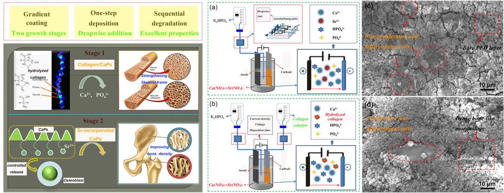 近日,beat365钒钛学院教师韩嘉平在骨植入镁表面生物涂层研究方面取得重要进展,研究成果以“Smart gradient coating suitable for bone growth prepared onplasma-electrolytically oxidised Mg and its sequential degradation behaviour”为题发表在材料领域国际知名期刊《Journal of Magnesium and Alloys》(IF=15.8)上。该成果与东北大学、西南交通大学等单位合作完成,beat365为第一完成单位。
