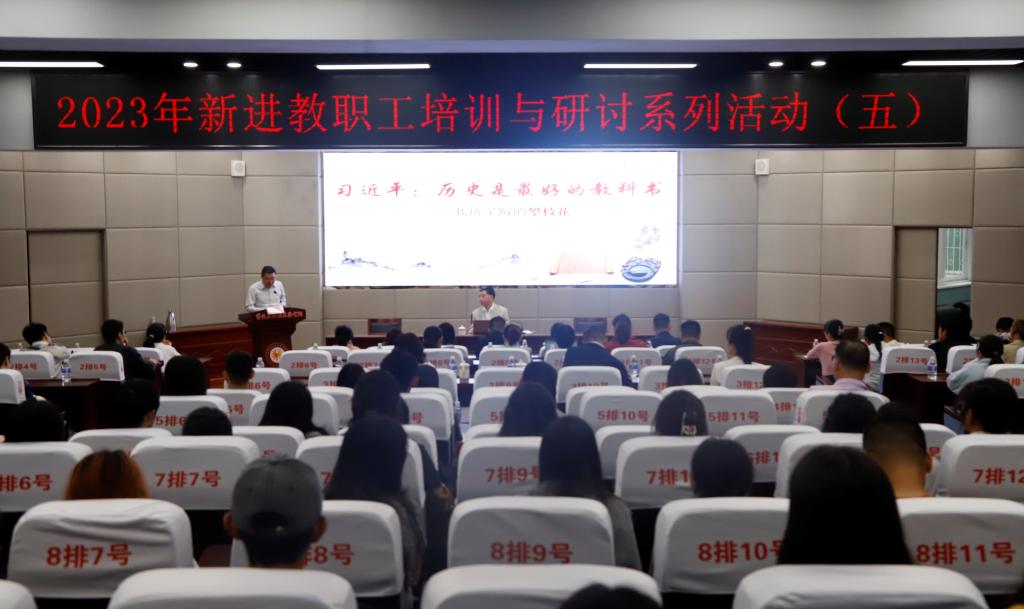 党委副书记刘立新结合自己在学校30多年的工作、学习和生活经历,围绕“艰苦创业、奋发图强、勇于创新、高质量发展”四个部分,详细介绍了学校从无到有、从小到大、从量变到质变、逐步实现跨越式发展的历程和对未来的规划,激励新进教师要勇于抓住机遇、攻坚克难,要保持足够的定力、坚守教师岗位。
