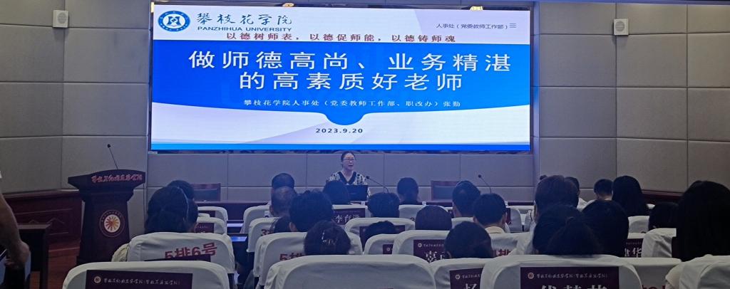 9月27日,党委书记胥刚为新进教师作题为“新时代:我们如何——好!”的专题讲座。他指出,一名好教师要善待学生、严格要求学生,要做阳光、健康、美丽的“四有”好老师,做学生成长成才的引路人和大先生,并勉励新进教师要以深度行动的担当,勇担攀大教师责任,努力写好美丽和谐幸福攀枝花教育的“未来简史”。