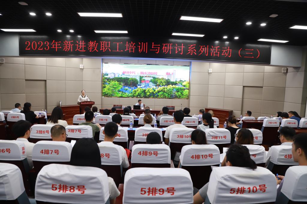 学工部部长王东波,教务处副处长高朝阳,人事处副处长秦振涛、李大国,科研处处长钟玉泉、副处长张祺,资管处处长湛红艳分别开展辅导员职业发展路径、教育教学规章制度、人才计划、人事管理制度、科研工作考核管理、科研诚信管理、资产管理政策解读等专题讲座;人事处相关科室负责人详细解读职称申报、岗位聘任、人才服务等相关政策,帮助新进教师进一步了解学校相关管理规范。