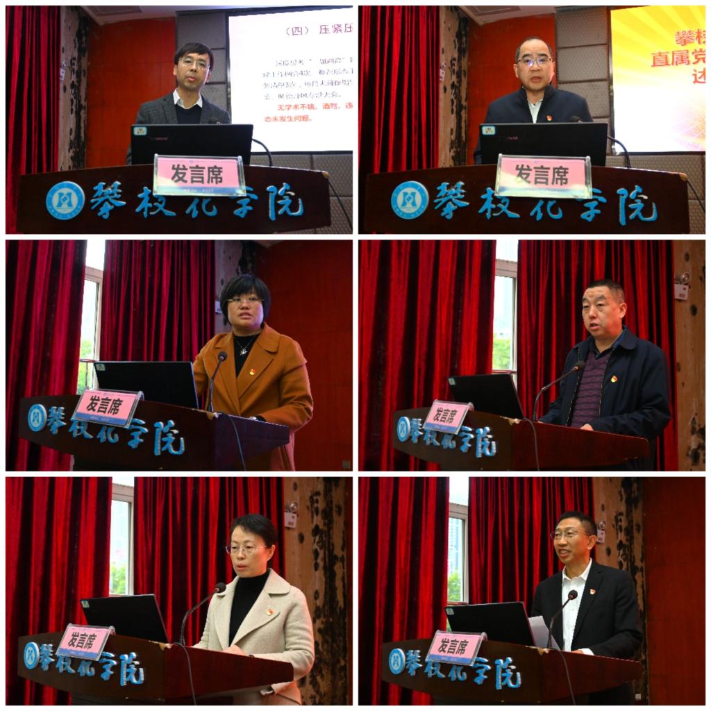 校党委书记胥刚代表学校党委一一点评并作总结讲话。他充分肯定了各直属党组织在学校党委领导下,高质量党建带动学校高质量发展所取得的成绩,也指出了各直属党组织存在的问题和不足。他指出,一年来,各直属党组织围绕学习贯彻习近平新时代中国特色社会主义思想主题教育、学校第三次党代会等重点工作发挥了重要作用,在党建引领示范中彰显了特色亮点,形成了一些经验典型。接下来,要着力推进党建引领与业务工作的深度融合,持续加强党建文化品牌创建和党建工作理论研究,进一步丰富党建活动载体,深入凝练“党建品牌”和“优秀支部工作法”的攀大特色。