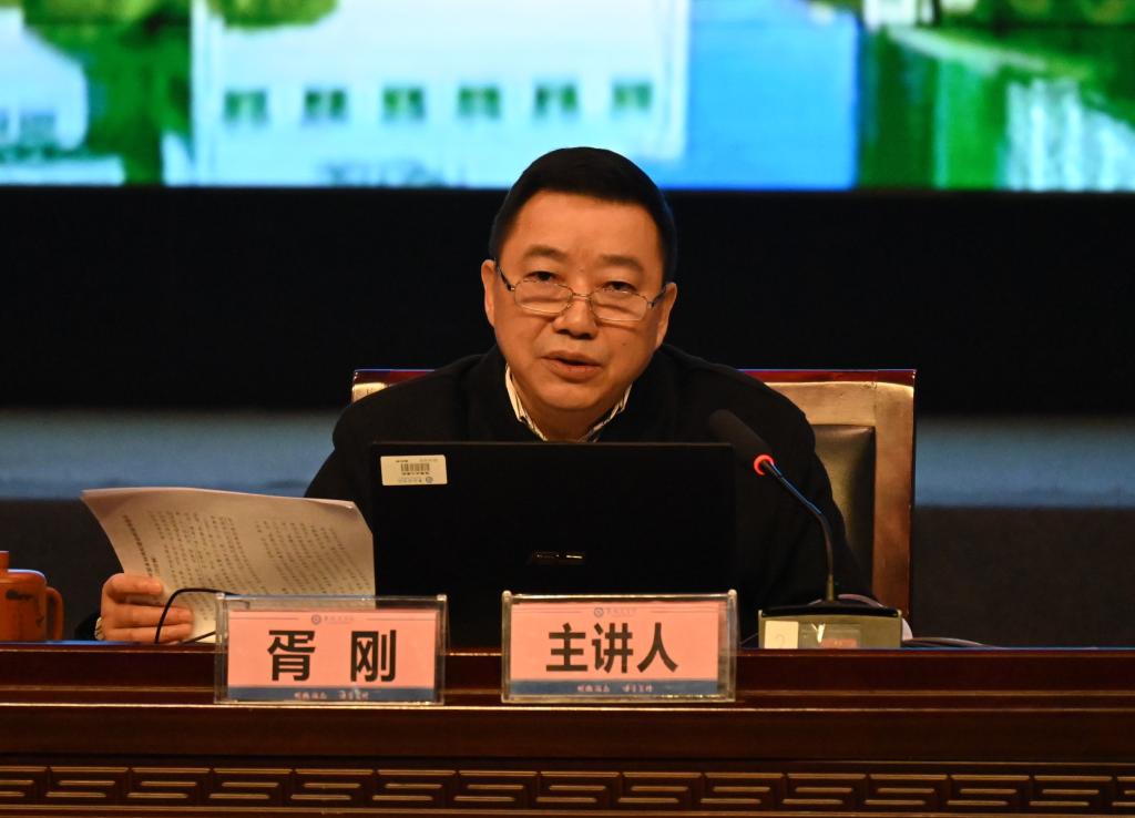 校党委书记胥刚主讲《贯彻第三次党代会精神——提升治理能力 推进一流发展》。
