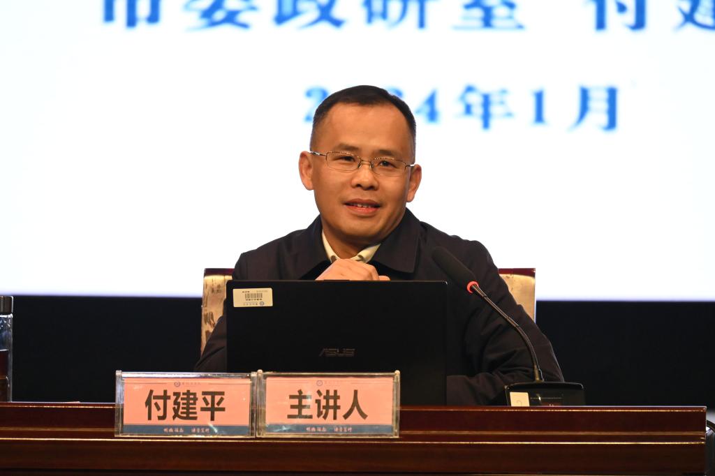 市委副秘书长、政研室主任付建平主讲《省委十二届四次全会精神解读》。