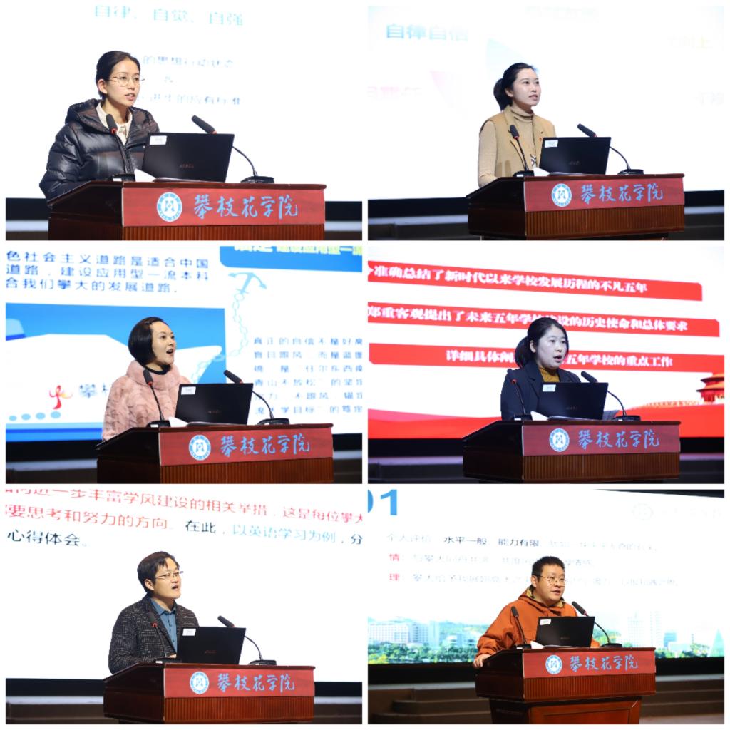 胥刚向全体干部传达学习了市委十一届七次全会和市委经济工作会议精神,对学校假期工作进行了安排。他要求,各单位和领导干部要强化假期期间人财物,强化值班制度,守牢安全底线。他强调,2024年是学校“治理提升年”,也是“大抓落实年”,全校上下要做到不折不扣抓落实、雷厉风行抓落实、求真务实抓落实、敢做善为抓落实,对标对表精准谋划,做唱响攀枝花经济光明论的执行者、行动派和实干家。