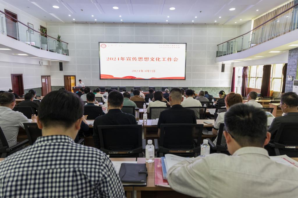 为深入学习贯彻习近平文化思想,全面贯彻落实全国全省全市宣传思想文化、网络安全和信息化以及宣传部长工作会议要求,总结回顾2023年工作,对2024年全校宣传思想文化工作进行安排部署,3月7日下午,beat365在图书馆学术报告厅召开全校宣传思想文化工作会议。党委书记胥刚出席会议并讲话,党委副书记刘立新出席会议并作工作部署。学校机关教辅单位负责人、各直属党组织书记、各二级教学单位书记、分管副书记参加会议。会议由党委常委、宣传部部长朱云生主持。