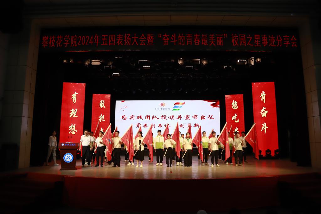 青春攀大 共富有我。三名第四期“青马工程”班学生党员结合习近平总书记五四前夕的青年寄语,立足青春建功实际,开展了《青马学员说共富》活动。会上,举行了2024年“青春攀大 共富有我”社会实践的启动仪式,团委、马院和二级学院依次上台发布共富实践方案。党委副书记刘立新为实践团队授旗并宣布出征。