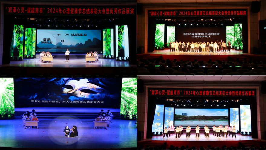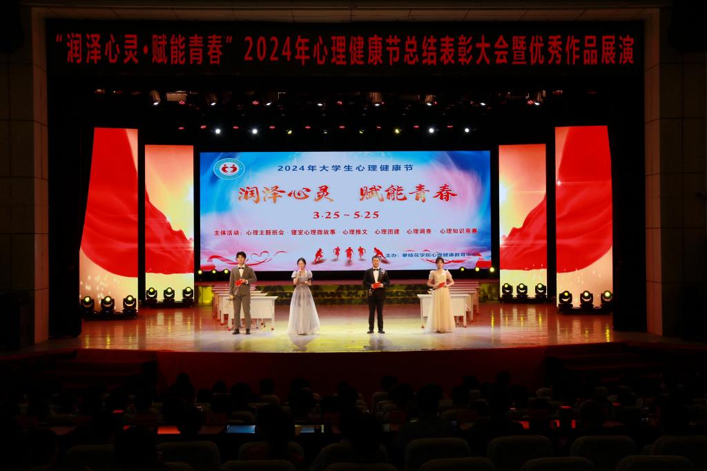 为了全面贯彻党的教育方针,落实立德树人根本任务,全面提升beat365学生心理健康素养,依托“5.25”心理健康节,beat365心理中心组织开展了“润泽心灵,赋能青春”心理健康节系列活动。历时两个月,涵盖班级、寝室及个人的丰富多彩的心理健康教育系列活动暂时告一段落。5月25日上午,在学校会堂隆重举行2024年心理健康节总结表彰大会暨优秀作品展演活动。副校长朱云生,学生处、校团委、马克思主义学院、二级学院的相关领导,二级学院学生科长、分团委书记及心理健康教育中心专兼职教师、大一至大三辅导员、获奖学生和部分学生代表参加此次活动。