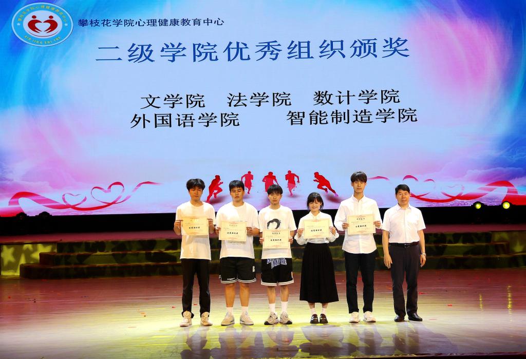 与会领导现场为本年度“5.25”系列活动—— “心理知识竞赛”、“心理推文”、“寝室心理微故事”、“心理主题班会”的获奖人员和班级颁发奖状,并为本学年心理健康教育工作成绩突出的二级学院颁发证书。