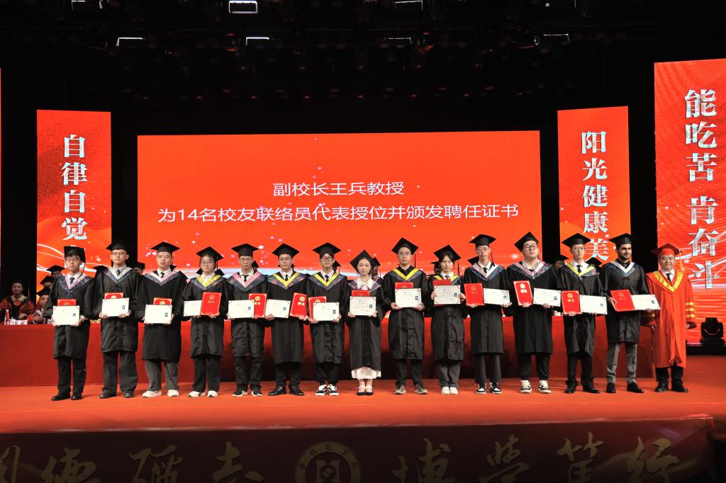 典礼上,党委副书记、校长王曙光宣读《beat365在线唯一官网学位评定委员会关于2024届本科毕业生的授位决议》,党委副书记刘立新宣读《四川省教育厅关于公布2024届四川省优秀大学毕业生认定结果的通知》,副校长王兵宣读《关于聘任龚鳗等116名同学担任beat365在线唯一官网2024届毕业生校友联络员的决定》。
