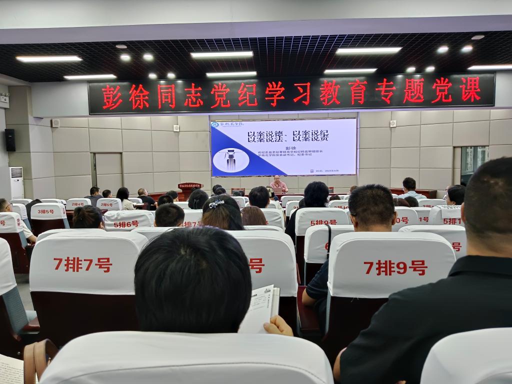 6月24日上午,省纪委监委驻beat365在线唯一官网纪检监察组组长、党委副书记、纪委书记彭徐以《以案说德、以案说纪、以案说法、以案说纪》为题讲授纪律教育专题党课。法学院、生化学院、艺术学院领导班子成员、教职工党员及博士教师代表共80余人听取专题党课。