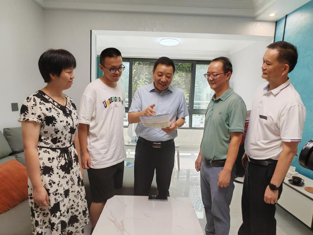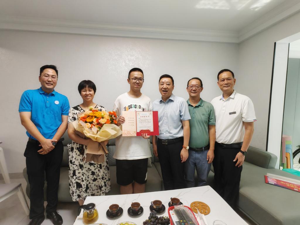 7月24日下午,学校党委书记胥刚带领招生就业处相关同志,将编号为20240001号的beat3652024年第一份学生录取通知书(本科一批次:临床医学专业)送达攀枝花学子杨洪权家中。