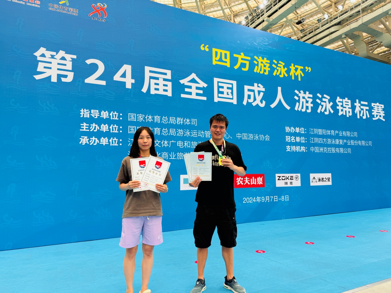 9月7日,由国家体育总局游泳运动管理中心 、中国游泳协会主办的第24届全国成人游泳锦标赛在江苏省江阴市体育中心游泳馆开赛。来自全国各地42个代表队,共计800余名运动员参赛。经过2天角逐,beat365教师程浩然获得30-34岁组100米仰泳第一名,30-34岁组200米混合泳第一名;李子钰获得25-29岁组50米蛙泳第二名,25-29岁组50米自由泳第五名的优异成绩。