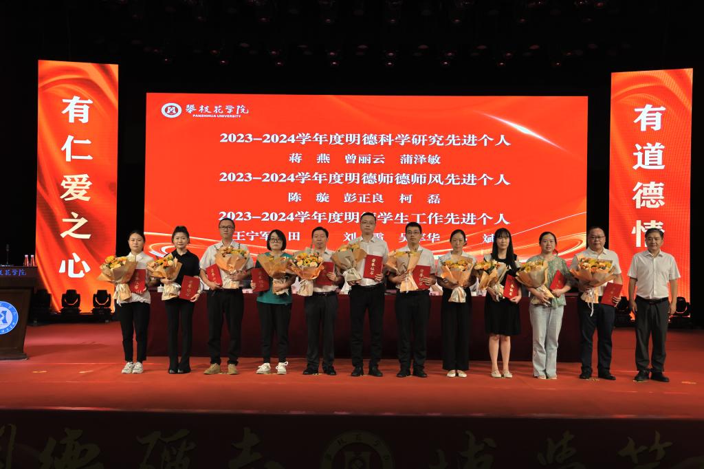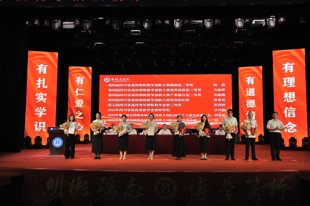 会上,2024年新入职教师还在领誓人的带领下,现场进行了攀大教师自律誓词宣誓。