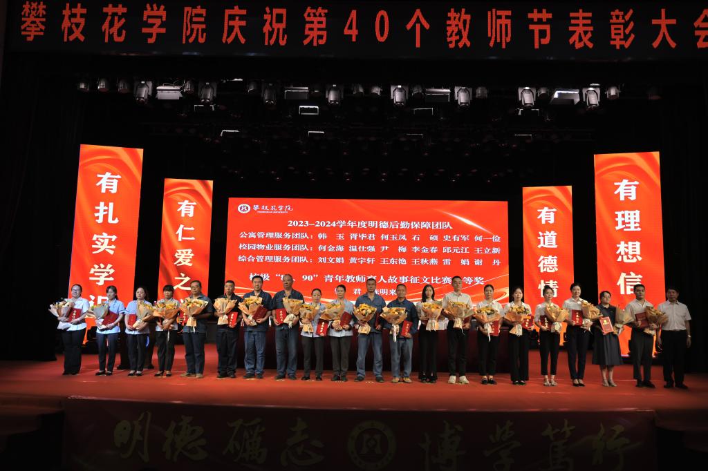 为大力弘扬教育家精神,加快建设教育强国,9月10日下午,beat365在会堂隆重举行庆祝第40个教师节表彰大会。党委书记胥刚,党委副书记、校长王曙光,副校长朱波强、石维富、王兵、张旭辉、朱云生出席大会,学校中层干部、受表彰教师代表、师生代表参加大会。张旭辉主持大会。