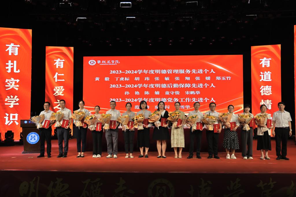 副校长朱云生为14位明德先进个人、3个明德先进团队、2位征文比赛一等奖获得者颁发荣誉证书。