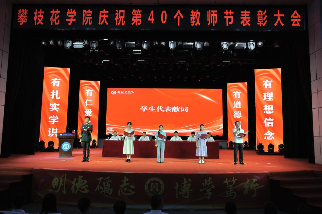 学生代表围绕“德智体美劳”五个方面对老师们的辛勤付出表示感谢,并向老师们献上节日的问候与祝福。