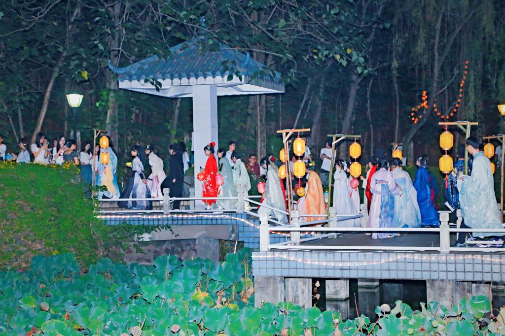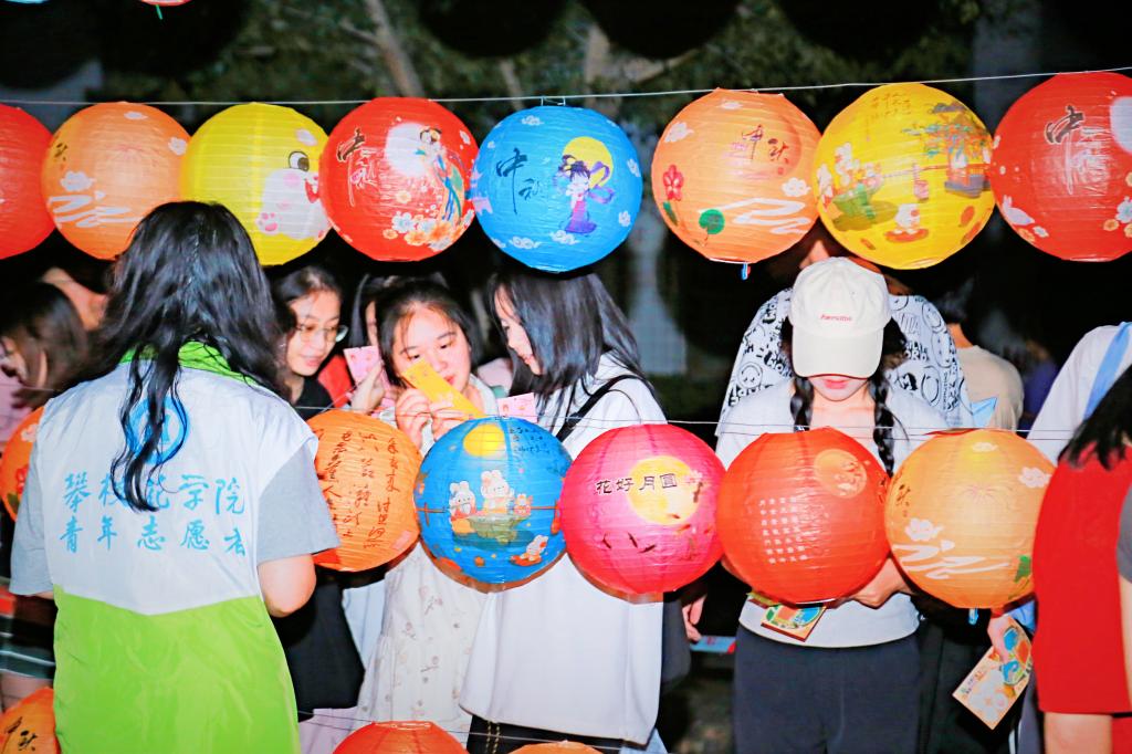 夜幕降临,华灯初上,通往学校静明湖畔的道路人流如织,络绎不绝。静明湖畔,国风旋律萦绕,不绝于耳。百人汉服巡游,展现古韵霓裳之美;古风美拍,一颦一笑,尽显古风韵味,在古色古香的场景中留下美丽瞬间;猜灯谜,看看谁是最强大脑,还有投壶、空中揽月、玉兔吃月饼、月兔拔萝卜……丰富多彩的游戏吸引了众多游人参与,赢取惊喜礼品。