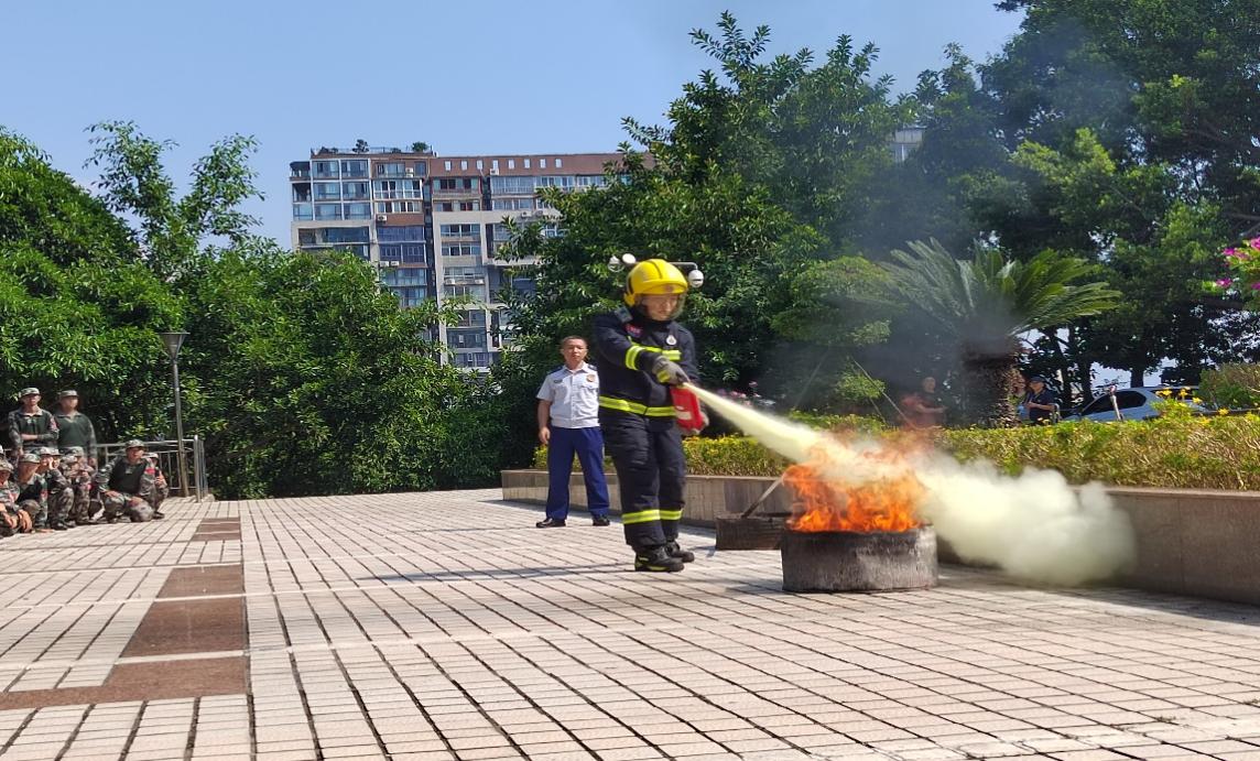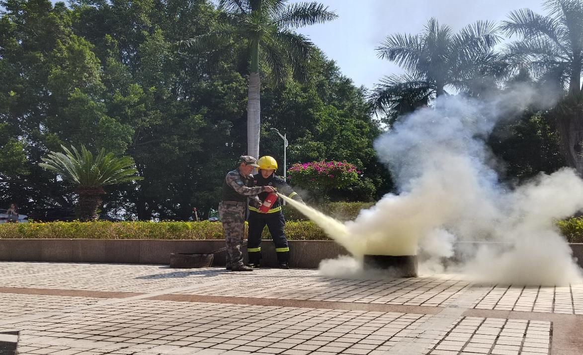 应急演练结束后,在第一教学楼广场举行了消防器材展示活动,消防官兵现场演示了消防器材的使用方法,同学们展现出了极高的热情与参与度,在专业教官的指导下,亲身体验了灭火的过程。通过实际操作,同学们不仅掌握了灭火设备的使用技巧,更深刻体会到了消防工作的重要性和紧迫性。