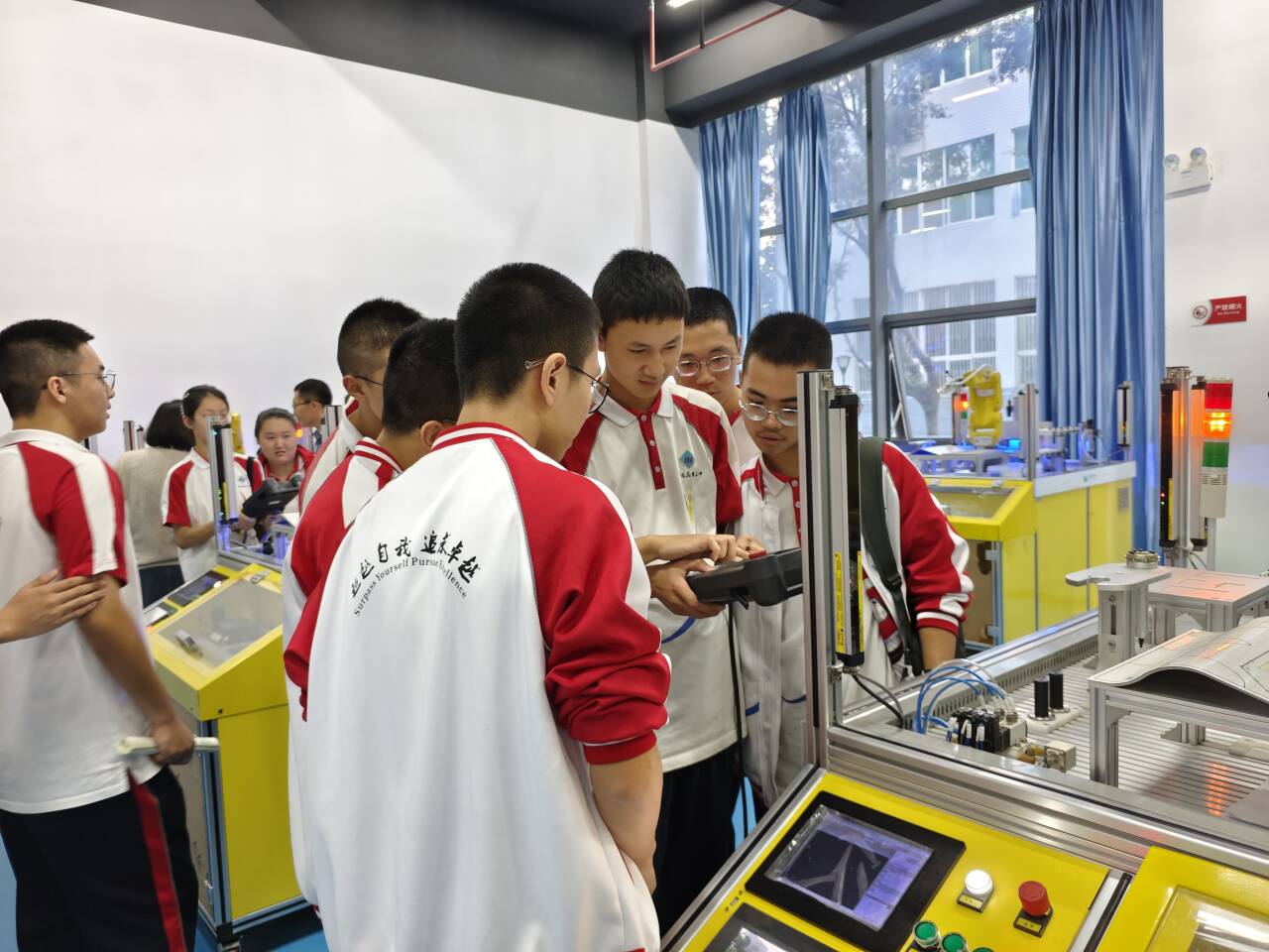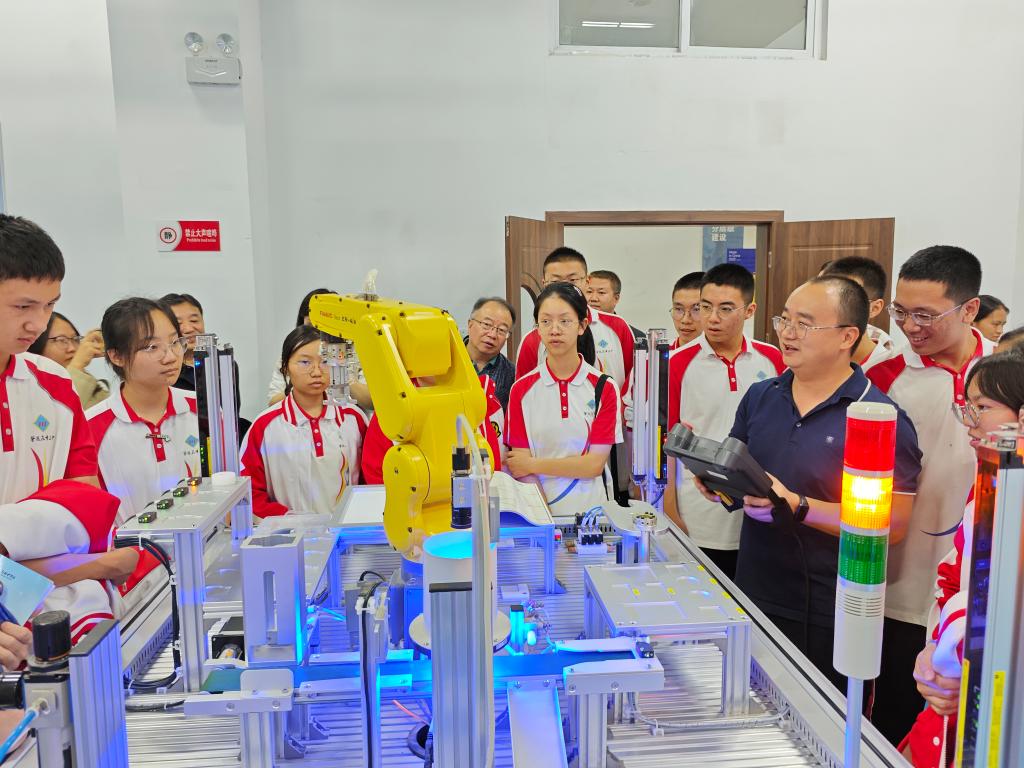 研学分别以“寻攀西工业之根 逐振兴家乡之梦”“探科技之光 寻匠心之路”“探索工业奥秘 铸就强国青年”“科技赋能艺术 点亮未来智慧”为主题先后走进了钒钛学院、土建学院、智造学院、艺术学院,前往省级实验示范中心的结构实验室、机器人实验室、虚拟仿真实验室、数字媒体实验室进行参观学习。各实验室负责人为同学们详细介绍了实验室的研究方向和相关专业发展方向,展示了先进的实验设备、逼真的模拟场景以及各类学科竞赛作品等。同学们兴致盎然、满怀期待,分别在老师和志愿者的引导下亲自动手参与了实验项目,感受了新技术新思维的力量,对专业领域有了更为直观的了解和认识,激发了专业兴趣。